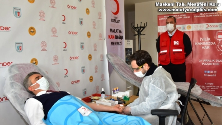 Malatya Valisi Aydın Baruş, 'İyilik Kanımızda Var' sloganı ile İmam Hatip Okulları'nda başlatılan kan bağış kampanyası kapsamında Selahaddin Eyyubi Anadolu İmam Hatip Lisesi'nde kan bağışında bulundu.