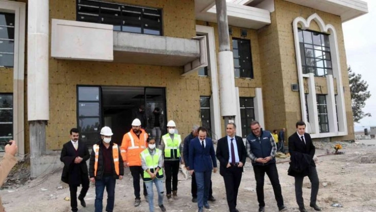 Samsat’taki temaslarına yapımı devam eden Sahabe Safvan Bin Muattal Külliyesi inşaatı ile başlayan Vali Mahmut Çuhadar, Sahabe Safvan Bin Muattal Külliyesinde devam eden çalışmaları yerinde inceleyerek, camii inşaatının son durumu ve yürütülen çalışmalarla ilgili bilgi alarak, çalışmaların hızlandırılması talimatını verdi.