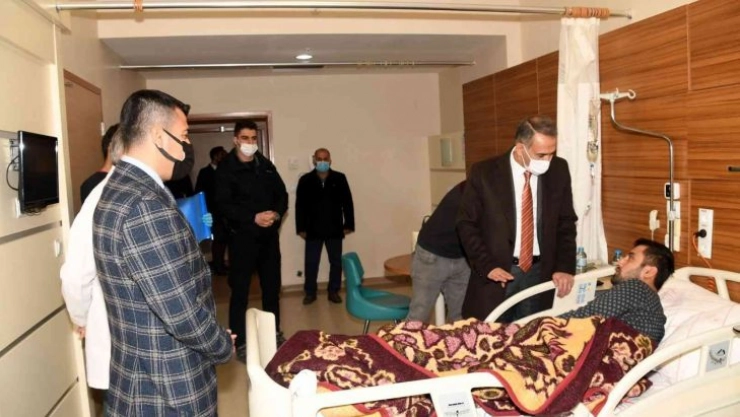 Ortopedi servisinde tedavisi devam eden ve sağlık durumu iyi olan Sözleşmeli Er Murat Doğan’ın sağlık durumu hakkında Hastane Başhekimi Doç. Dr. Fatih Doğan’dan bilgi alan Vali Mahmut Çuhadar, yaralı asker Murat Doğan’a geçmiş olsun dileklerin iletti.