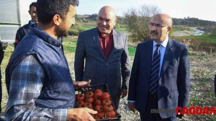 Vali Mahmut Demirtaş, Karaisalı ilçesinde gerçekleştirdiği programların ardından ilçede üretim yapan genç çiftçi Bekir Eray Çelikoğlu’nun domates serasını ziyaret etti.