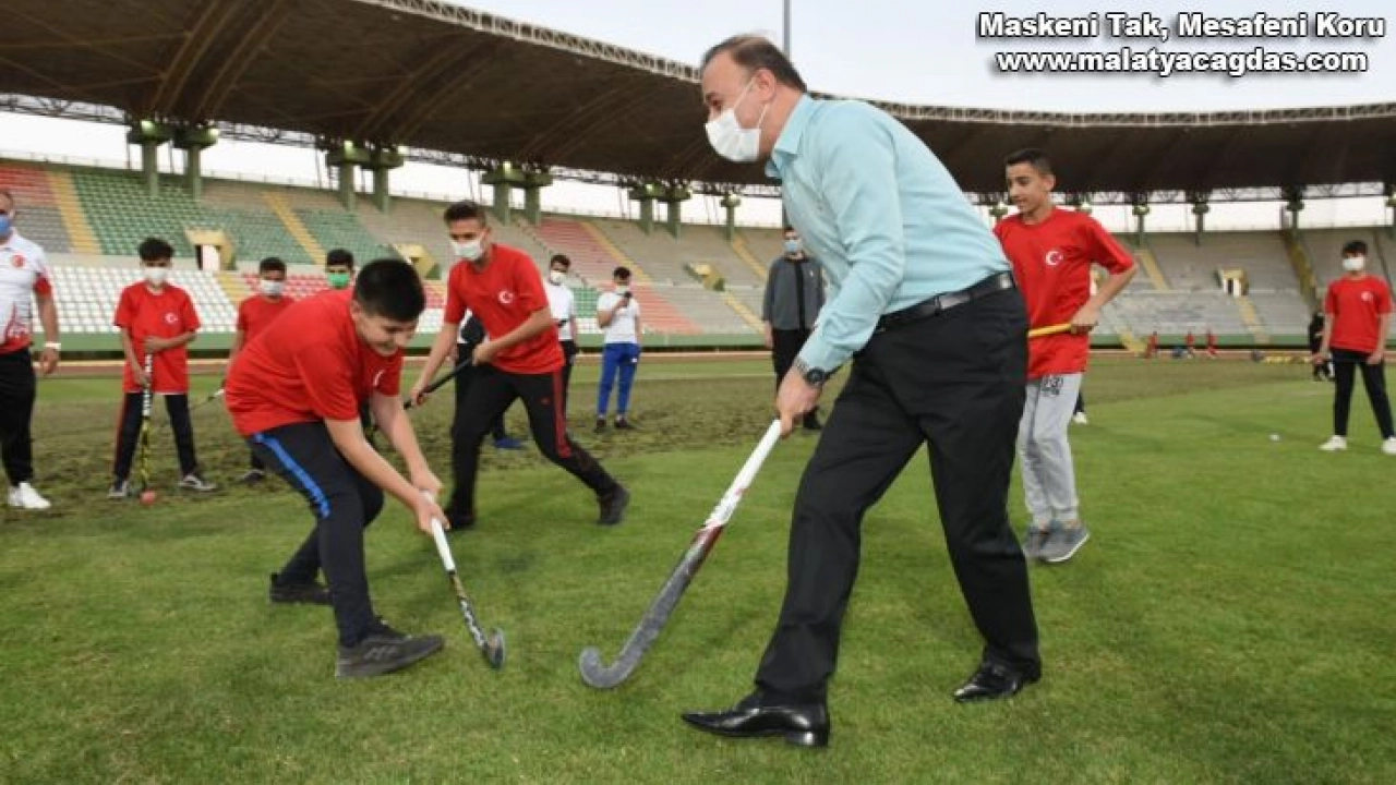 Saat 19.19’da İstiklal Marşı’nın okunmasının ardından sporcu gençlerle sohbet ederek bayramlarını tebrik eden Vali Erin, daha sonra gençlerle kısa bir çim hokeyi maçına katıldı. Gençlerin sporla iç içe bir hayat sürmesinin önemine değinen Vali Erin, genç sporculara başarılar diledi.