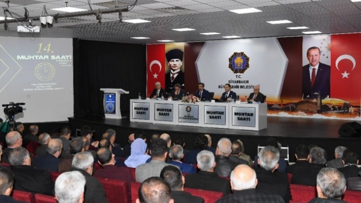 Her hafta Çarşamba günleri muhtarların mahallelerindeki alt yapı, içme suyu ve yol olmak üzere sorunları dile getirme fırsatı bulduğu Muhtar Saati uygulamasının 14’üncüsü gerçekleşti. Diyarbakır Büyükşehir Belediyesi konferans salonundaki toplantıya Vali Güzeloğlu, Büyükşehir Belediyesi Genel Sekreteri Muhsin Eryılmaz, Vali Yardımcısı ve DİSKİ Genel Müdür Vekil Dr. Ahmet Naci Helvacı, Büyükşehir Belediyesi ile DİSKİ Genel Müdürlüğü daire başkanları ve muhtarlar katıldı.