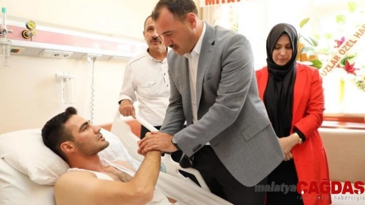 Mardin'in Nusaybin ilçesinde çıkan çatışmada yaralanan ve memleketi Elazığ'a sevk edilen Teğmen Kadir Gür'ü hastanede Vali Çetin Oktay Kaldırım ziyaret etti.