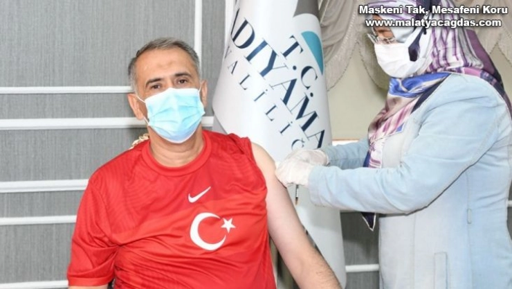Adıyaman Valisi Mahmut Çuhadar, Bilim Kurulunun korona virüs salgınıyla mücadele kapsamında toplumsal bağışıklığın sağlanması için 50 yaş ve üzeri vatandaşlar ile sağlık çalışanlarına yönelik 3’üncü doz aşıların gerekliliği konusundaki tavsiyesi üzerine 3. doz aşısını yaptırdı.