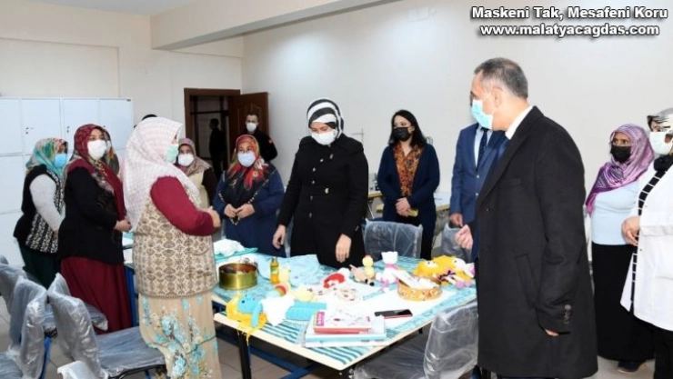 İmamağa Mahallesindeki ÇATOM binasında kadınlara yönelik açılan kursları tek tek gezerek, kursiyerlerle bir süre sohbet eden Vali Çuhadar, el emeği göz nuru dikiş ve nakış işlemeciliği yapan kadın kursiyerlerin ürünlerini inceleyip, yetkililerden yürütülen eğitim faaliyetleri hakkında bilgi aldı.