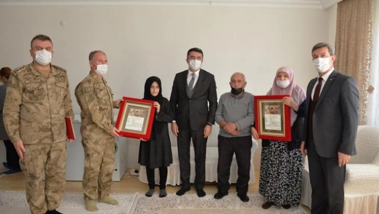 Merkez Yakutiye İlçesi Kurtuluş Mahallesi’nde ikamet eden aileyi ziyaret eden Vali Okay Memiş, şehadet belgesini şehidin annesi Erengül ve babası Süleyman Tortumlu ile eşi Eda Tortumlu’ya teslim ederek, "Sizler bize şehidimizin emanetisiniz. Bizler devletin tüm destekleri ile sizlerin yanında olacağız" dedi.