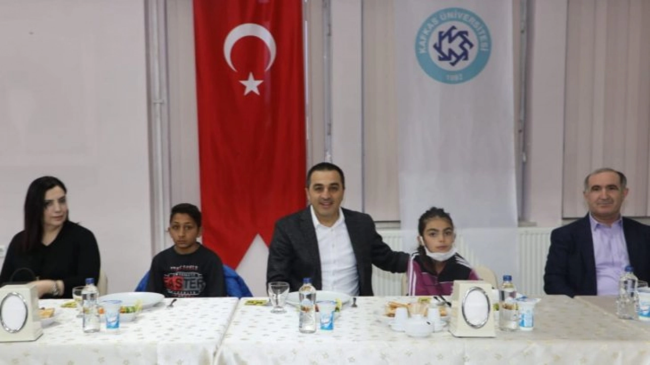 Vali/Belediye Başkan Vekili Türker Öksüz, eşi Meral Öksüz, ile birlikte, Kafkas Üniversitesi Rektörü Prof. Dr. Hüsnü Kapu’nun ev sahipliğinde Prof. Dr. Fuat Sezgin Gençlik Merkezi’nde düzenlenen iftar programında "Ortaöğretime Destek Eli Projesi" ile öğrenim gören öğrencilerle bir araya gelerek iftarını açtı.