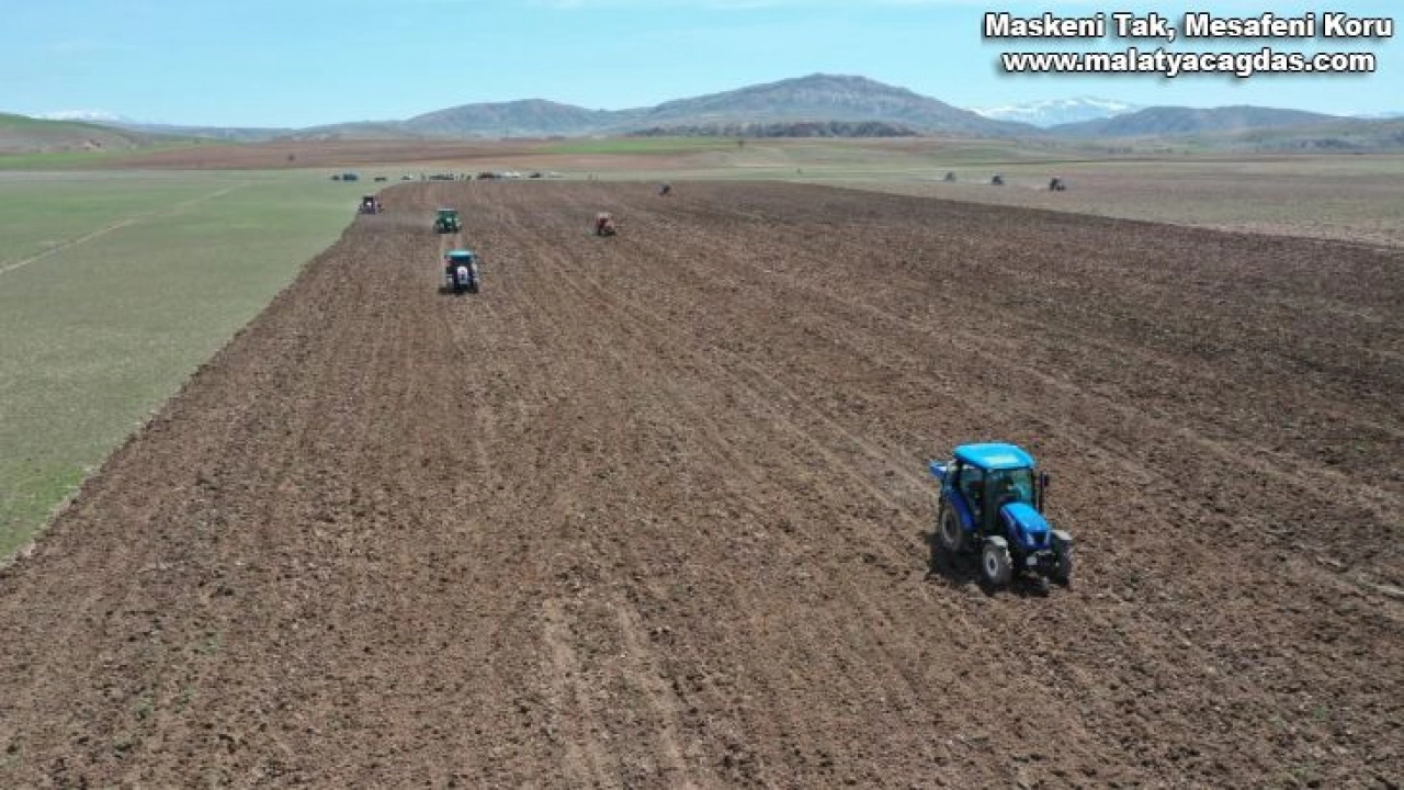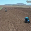 Sivas Valisi Salih Ayhan, direksiyonuna geçtiği traktörle yem bitkisi tohumu ekti.