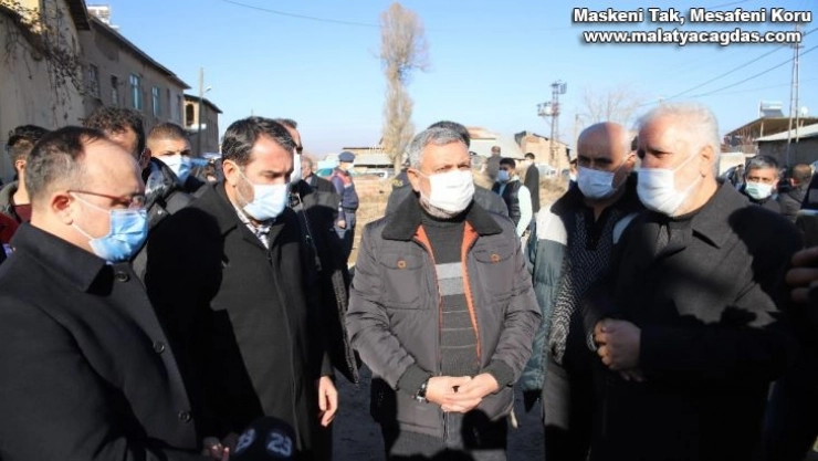 Elazığ'da meydana gelen 5.3 büyüklüğündeki deprem sonrası il protokolü depremin merkez üssü Kavaktepe köyünde incelemelerde bulundu.