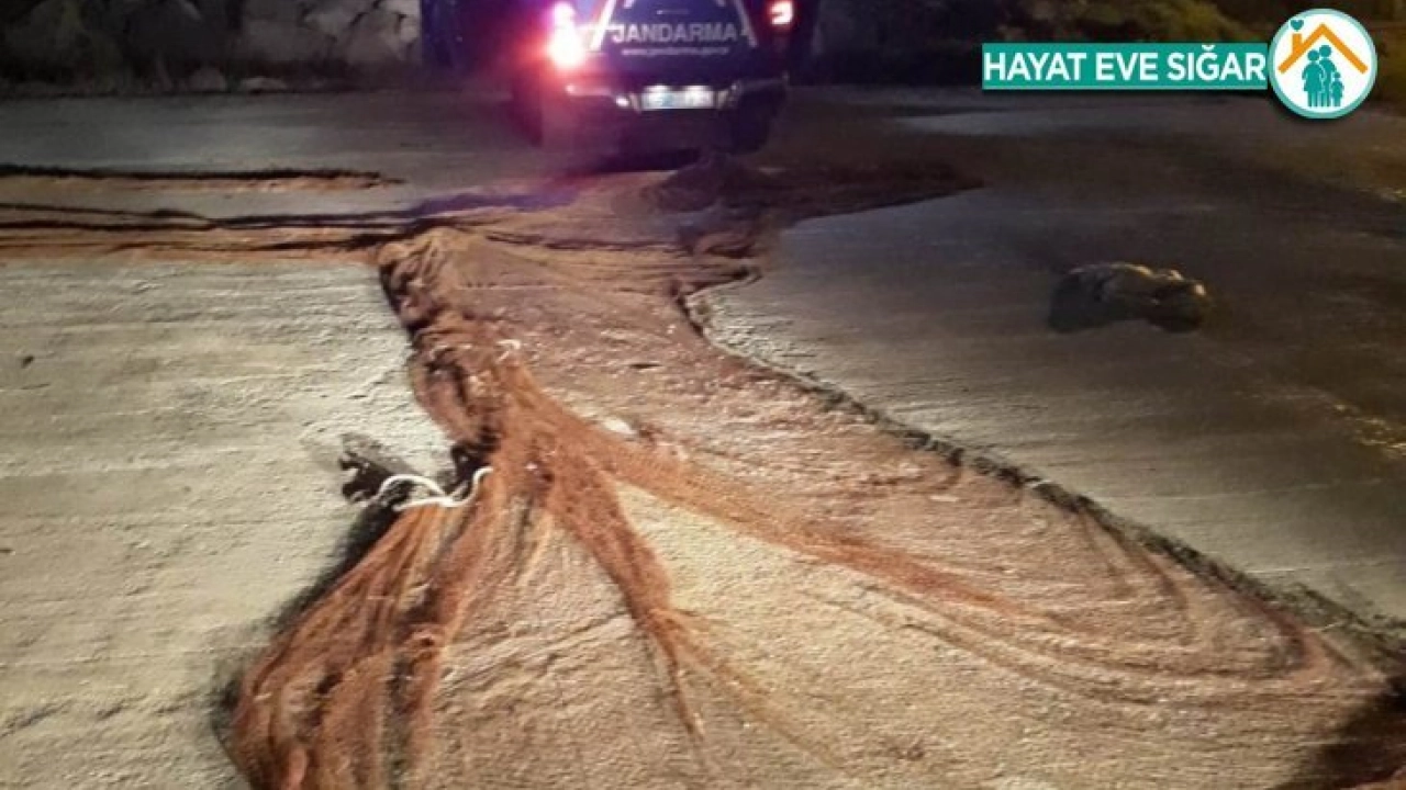 Van’ın Muradiye ilçesinde jandarma ekipleri tarafından yapılan çalışmalarda Van Gölü kıyısında, sazlıklar arasına gizlenen 350 metrelik manyat tipi ağ ele geçirildi.