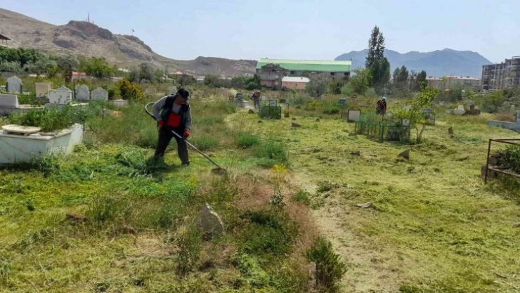 Van Büyükşehir Belediyesi, kent genelindeki mezarlıklarda yabani ot temizliği çalışması başlattı.