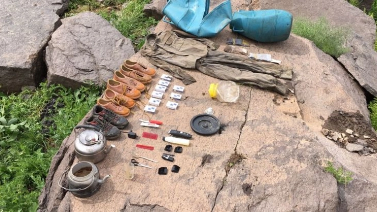Operasyonda teröristlerce kullanıldığı tespit edilen sığınakta terörist kıyafeti, 3 çorap, 4 spor ayakkabısı, 2 çaydanlık, bardak, çakı, makas, kaşık, diş macunu, diş fırçası, tarak, pil, jelikan, patlamamış ampul başlığı ve tıraş makinesi ile makineye ait başlıklar ele geçirildi.