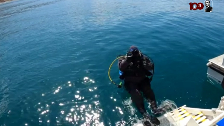 Su altı belgesel yapımcısı ve görüntü yönetmeni Tahsin Ceylan ile ekibi, Cumhuriyet'in 100. yılı dolayısıyla Van Gölü'ne özel dalış gerçekleştirerek mikrobiyalitleri görüntüledi.