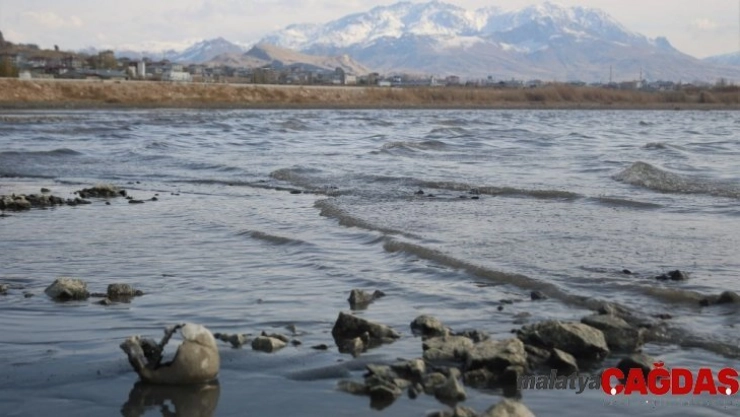 Van Gölü'nün Tuşba ilçesi sınırlarında suların çekilmesiyle birlikte çok sayıda insan kemiği ortaya çıktı.