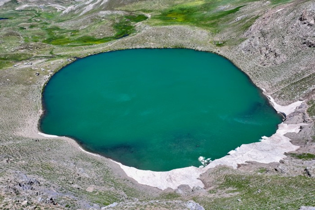 Vadi Doğa Sporları Kulübü üyesi 40 doğasever de zorlu yayla yolunu aşarak ulaştıkları 3 bin 200 rakımdaki gölün bulunduğu bölgede doğa yürüyüşü yaptı, eşsiz manzarayı görüntüledi.