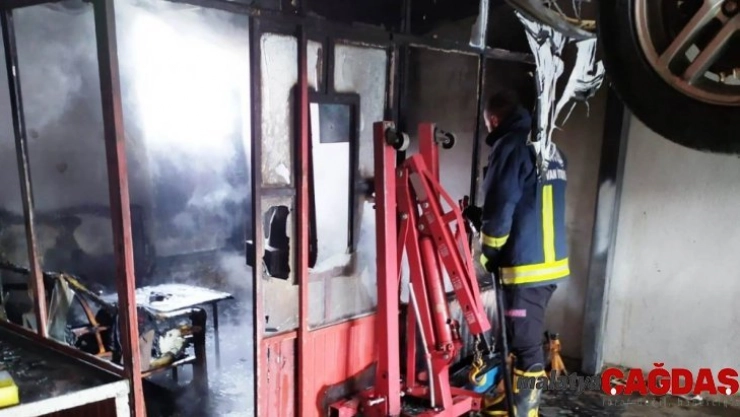 Van'da bir işyerinde meydana gelen yangında yazıhane ile bir otomobilde maddi hasar meydana geldi.