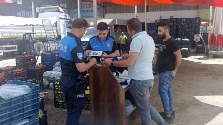 Toplum Destekli Polislik Şube Müdürlüğü görevlileri, toptancı halinde bulunan esnafı ve vatandaşları ziyaret ederek; dolandırıcılık, iletişim yoluyla dolandırıcılık, hırsızlık ve sahte para konularında bilgilendirerek el broşürü de dağıttı.