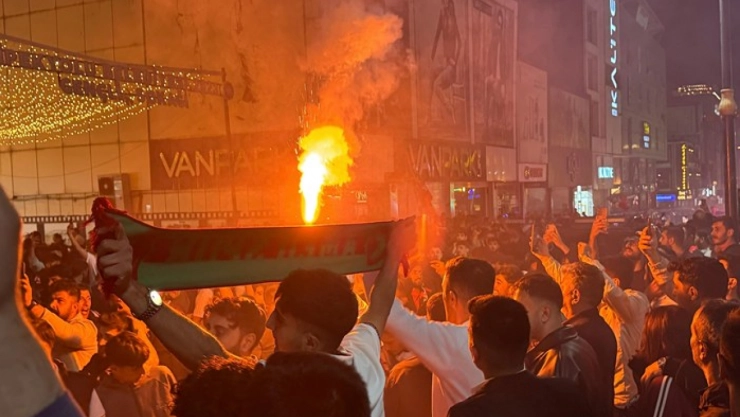 Nesine 2. Lig play-off üçüncü tur ilk maçında Artı Değer Vanspor FK'nin, evinde karşılaştığı Çimentaş Elazığspor'u yenmesinin ardından Van'da kutlama yapıldı.