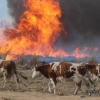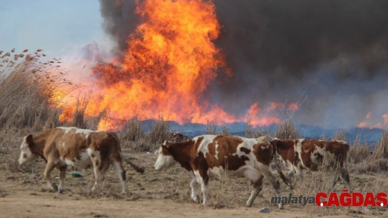 Kayseri-Sivas karayolu yakınlarında sazlık alanda çıkan yangın, rüzgarın da etkisiyle kısa sürede büyüdü. Alevlerin büyümesiyle orada otlayan büyükbaş hayvanların etkilenmemesi için çoban ve itfaiye ekipleri büyük uğraş verdi. Yangından kaçan domuzu gören vatandaşlar ise direklere çıkarak domuzun gitmesini bekledi.