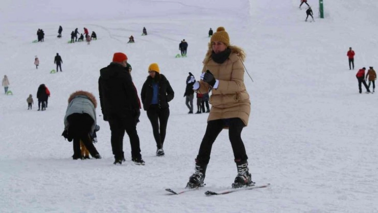 Elazığ’da ara tatil ve hafta sonunu fırsat bilen vatandaşlar, göl manzaralı Hazarbaba Kayak Merkezine akın etti.