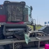 Biçerdöverle çarpışan otomobildeki 2 kişi yaralandı