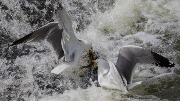 Van Gölü'nde yaşayan ve üreme döneminde tatlı sulara göç eden inci kefallerinin zorlu yolculuğunu, Kurban Bayramı tatilinde Erciş Balık Bendi Tabiat Parkı'nı ziyaret eden binlerce kişi izledi.
