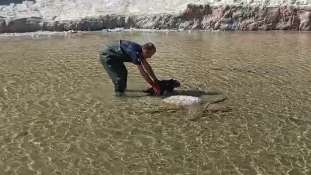 Malatya'nın Darende ilçesi Heyiketeği Mahallesi'nde süs havuzunda mahsur kalan yaralı leylek, Malatya Büyükşehir Belediyesi İtfaiye ekiplerinin müdahalesiyle kurtarıldı.