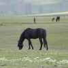 Yüksek kesimlerde yaşam mücadelesi veren yılkı atları, ilkbaharda yerleşim yerlerine kadar inerek, yiyecek arıyor.