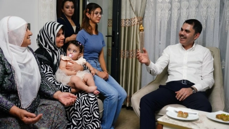 Çevre, Şehircilik ve İklim Değişikliği Bakanı Murat Kurum, Malatya'nın Akçadağ ilçesinde yeni evlerine kavuşan Güde ailesini ziyaret etti. Kurum, 'Tüm vatandaşlarımız huzurla oturana kadar çalışacağız' mesajı verdi. Mahalleli çocukların halı saha talebine de olumlu yanıt verdi.