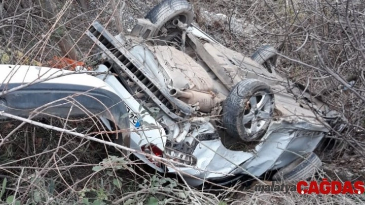 Adıyaman Kahta karayolu üzerinde virajı alamayan otomobil şarampole yuvarlandı.
