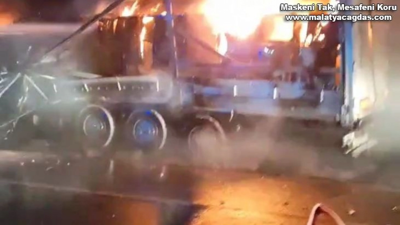 Virajı alamayan tır elektrik direğine çarpıp patlayarak alev aldı