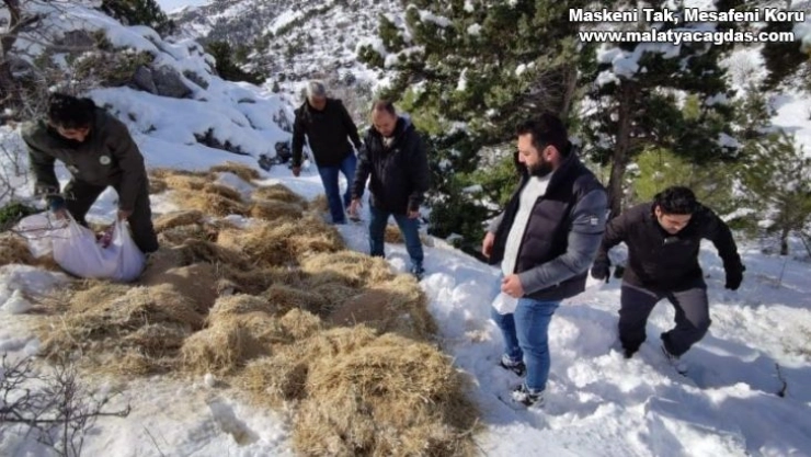 Adıyaman’da yaban hayvanlarının aç kalmaması için doğaya yem bırakıldı.