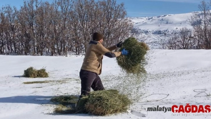 Malatya'da kış mevsimi nedeniyle karla kaplanan yüksek rakımlı bölgelere yaban hayvanları için yem bırakıldı.