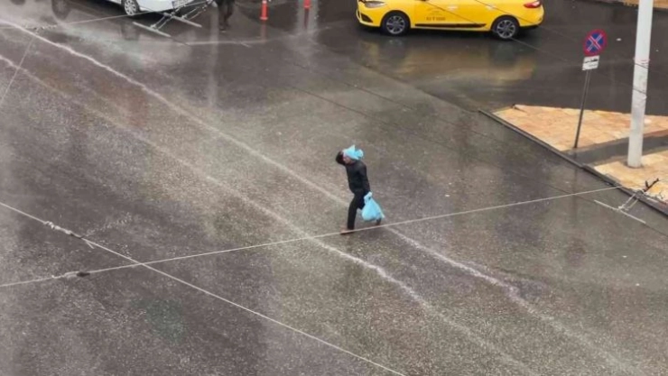 Yağmura hazırlıksız yakalanan vatandaşlar başlarına poşet geçirdi