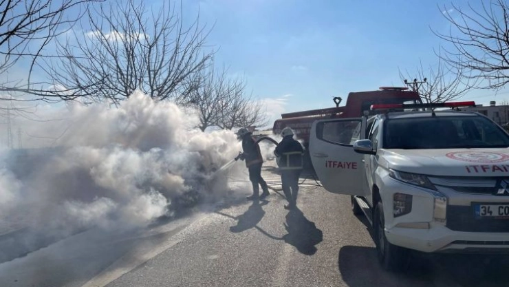 Edinilen bilgiye göre olay, Şanlıurfa’nın Suruç ilçesinde yaşandı. Nasır K.’nin kullandığı 02 DE 297 plakalı otomobil, içerisinde eşi ve 2 küçük çocuğu olduğu sırada seyir halindeyken aniden alev aldı. Motor kısmından yükselen alevler, otomobildekilerin yüzünü yaktı. Güvenlik kamerasına da yansıyan görüntülerde yolda duran sürücü, eşi ve çocuklarını çıkartıp otomobilden uzaklaştırdıktan sonra yan taraftaki şantiyeye giderek yardım istedi. Şantiyedeki yangın söndürme tüpüyle müdahale edilen alevler söndürülemeyince itfaiyeye haber verildi. Olay yerine giden itfaiye ekipleri, alevlere müdahale etti. Müdahale sırasında çevredekiler, otomobilin LPG’li olduğunu söyleyerek görevlileri dikkatli olmaları konusunda uyardı. İtfaiyenin müdahale ederek söndürdüğü yangında otomobil kullanılamaz hale gelirken son anda kurtulan anne ve 2 çocuğu ise alevlerin yüzlerine etki etmesi nedeniyle hastaneye götürüldü.