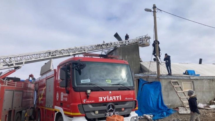 Alınan bilgiye göre Aşkale’nin ahırlar bölgesinde bulunan Osman Yılmaz’a ait ahırın üstünde bulunan çobanın evinde yangın meydana geldi. Çobanın hayvanların yemini vermek için ahıra indiği sırada soba bacasından çıktığı tahmin edilen yangın yine çobanın erken fark etmesi ve itfaiyeye haber vermesi ile mal kaybını da önledi. Çoban yeni yanmaya başlayan evinden kurtarabildiği eşyaları dışarı taşırken Erzurum Büyükşehir Belediyesi Aşkale İtfaiye ekipleri olay yerine gelerek yangına müdahale ettiler. Önce camdan sonrada çatıdan saç karı kaldırarak yangını söndürdüler.