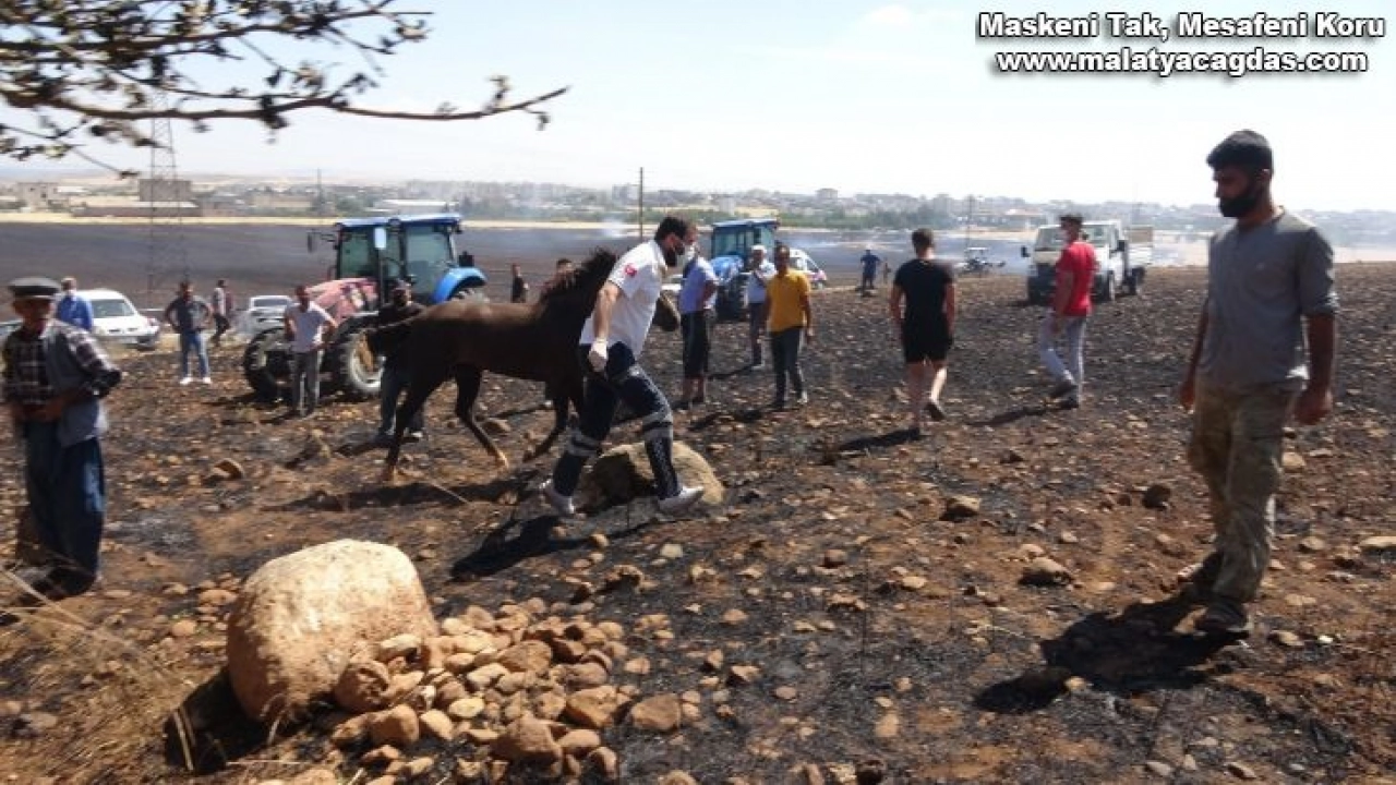 Adıyaman'da 200 dönümlük alanda meydana gelen ekili alan yangınında 4 kişi dumandan zehirlenerek hastaneye kaldırılırken, hayvanlar alevler arasında kalarak yaralandı.