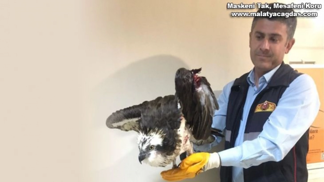 Adıyaman'ın Kahta ilçesinde yaralı halde bulunun balıkçıl kartal, Kahta İtfaiye ekiplerince kurtarıldı.