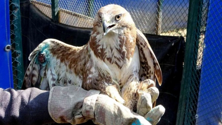 Adana’nın Ceyhan ilçesine bağlı Mustafabeyli Mahallesi’nde bir vatandaş tarafından yaralı halde bulunan kızıl şahin Osmaniye Doğa Koruma ve Milli Parklar Şube Müdürlüğü ekiplerine teslim edildi. Vatandaştan teslim alınan kızıl şahin Yaban Hayvanı Acil İlk Müdahale Merkezi’ne getirildi. Veteriner hekim tarafından yapılan ilk incelemelerde kuşun sağ kanadında açık yara ve pençesinde yaralı olduğu tespit edildi. Pençesinde kesiklerde olduğu belirlenen kızıl şahin antibiyotik içeren özel krem ve spreylerle tedavi uygulandı. İlk tedavisi tamamlanan şahin Yaban Hayvanı Acil İlk Müdahale Merkezi’nde gözlem altına alındı.