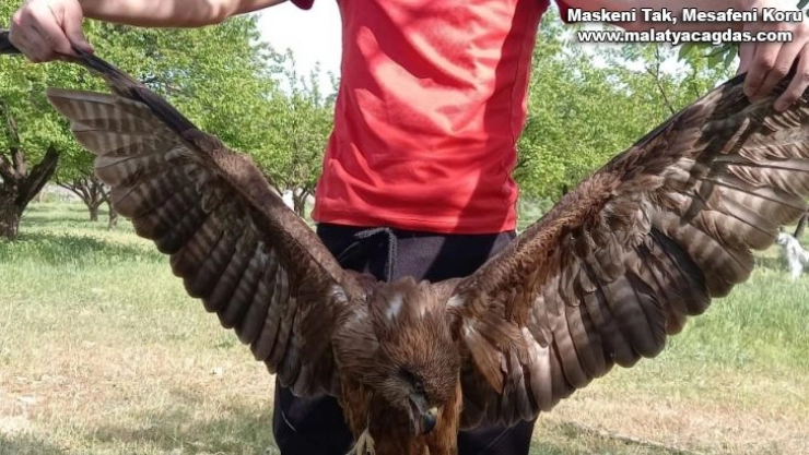 Malatya’da, bir aracın çarpması sonucu yaralanan Kartal tedavi edilmeyi bekliyor.