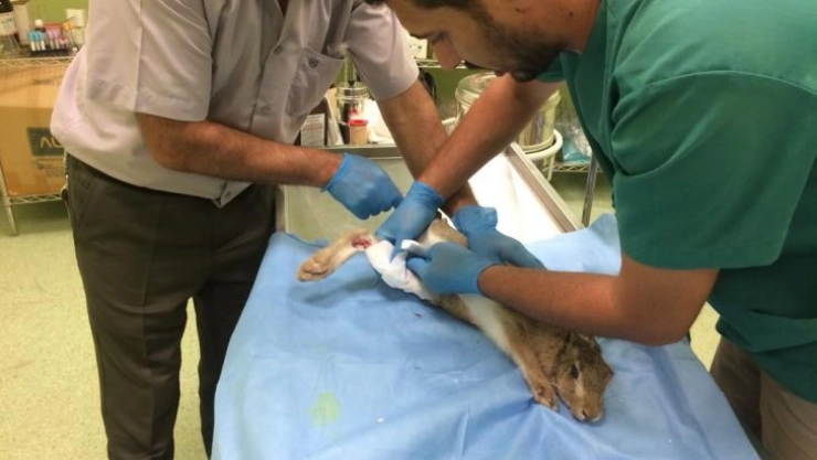 Kayseri'de araç çarpması sonucu ayağı kırılan ve yaralanan yaban tavşanı tedavi altına alındı.