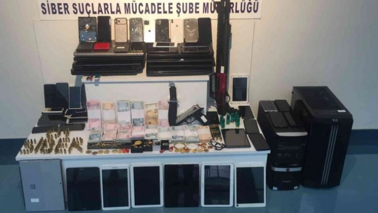 Şüphelilerin adreslerinde yapılan aramalarda suçtan elde edildiği üzerinde durulan 300 bin TL değerinde altın, 120 bin TL ile 1 ruhsatsız abanca, 1 pompalı tüfek, çok sayıda cep telefonu, bilgisayar, hard disk ele geçirildi.
