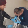 Belediyenin veteriner teknikeri Fatih Çiftçi ve beraberindeki ekip, yavru köpeği teslim alarak yaptıkları ilk tedavinin ardından klinikte misafir ettiler.