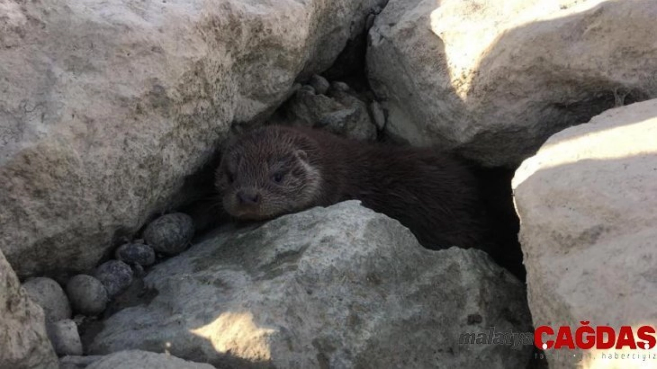 Muş’taki Murat Nehri kenarında bir işletmede gece bekçiliği yapan vatandaş tarafından bulunan ve nesli tükenmekte olan su samuru, yeniden doğal ortamına bırakıldı.