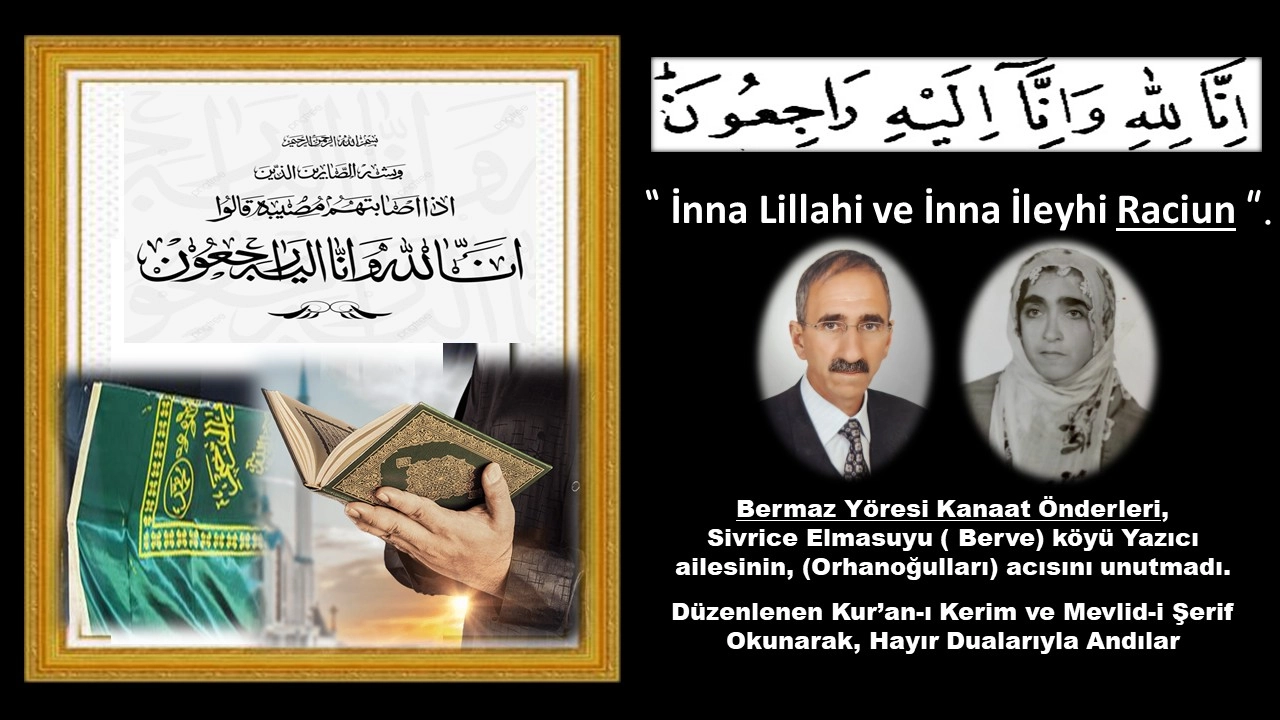 Haber Sitemiz adına, merhum ve merhumeye Allah’tan rahmet; değerli Yazıcı (Orhanoğulları) Ailesi’ne sabr-ı cemil diliyoruz.