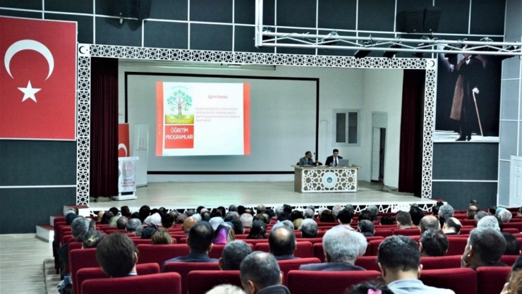 Şehit Oğuzhan Günaydın Halk Eğitim Merkezi'ndeki toplantıya, İlçe Milli Eğitim Müdürlüğü idarecileri ve okul müdürleri katıldı.