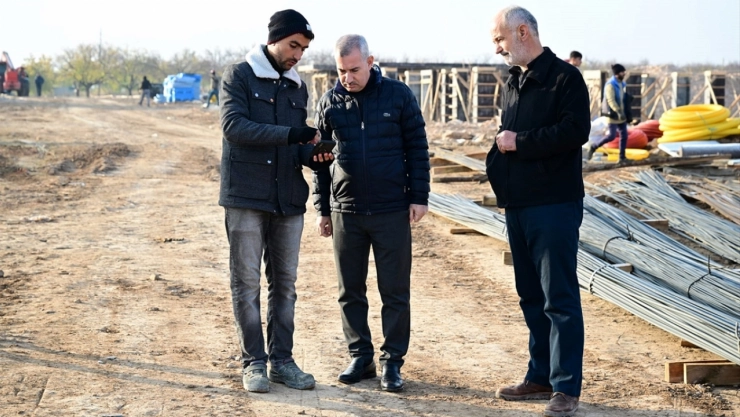 İnşaat alanında incelemelerde bulunan Belediye Başkanı Mehmet Çınar, Çayırköy'ün yaklaşık 104 ağır hasarlı eviyle ilçede depremlerden en fazla etkilenen mahalleler arasında olduğunu vurguladı.
