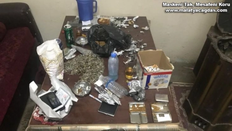 Yapılan operasyonda toplam 210 gram Sentetik kannabinoid (Bonzai), 4 gram metamfetamin, 5 fişek halinde 2.30 gram Eroin maddesi ele geçirildi. Evde bulunan 13 şahsa Covid-19 tedbirleri kapsamında 37 bin 800 TL idari para cezası verildi.
