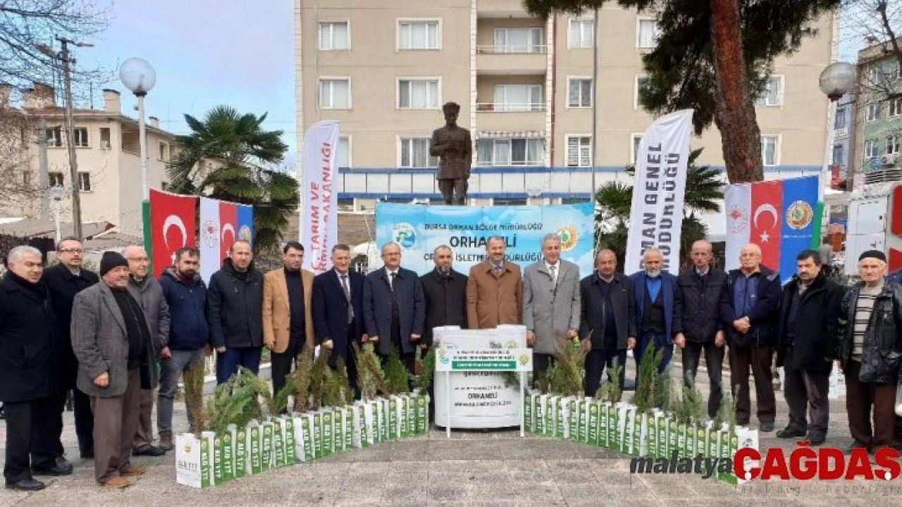 Bursa'nın Orhaneli ilçesinde Orman İşletme Müdürlüğü tarafından vatandaşa ücretsiz 500 fidan dağıtıldı.