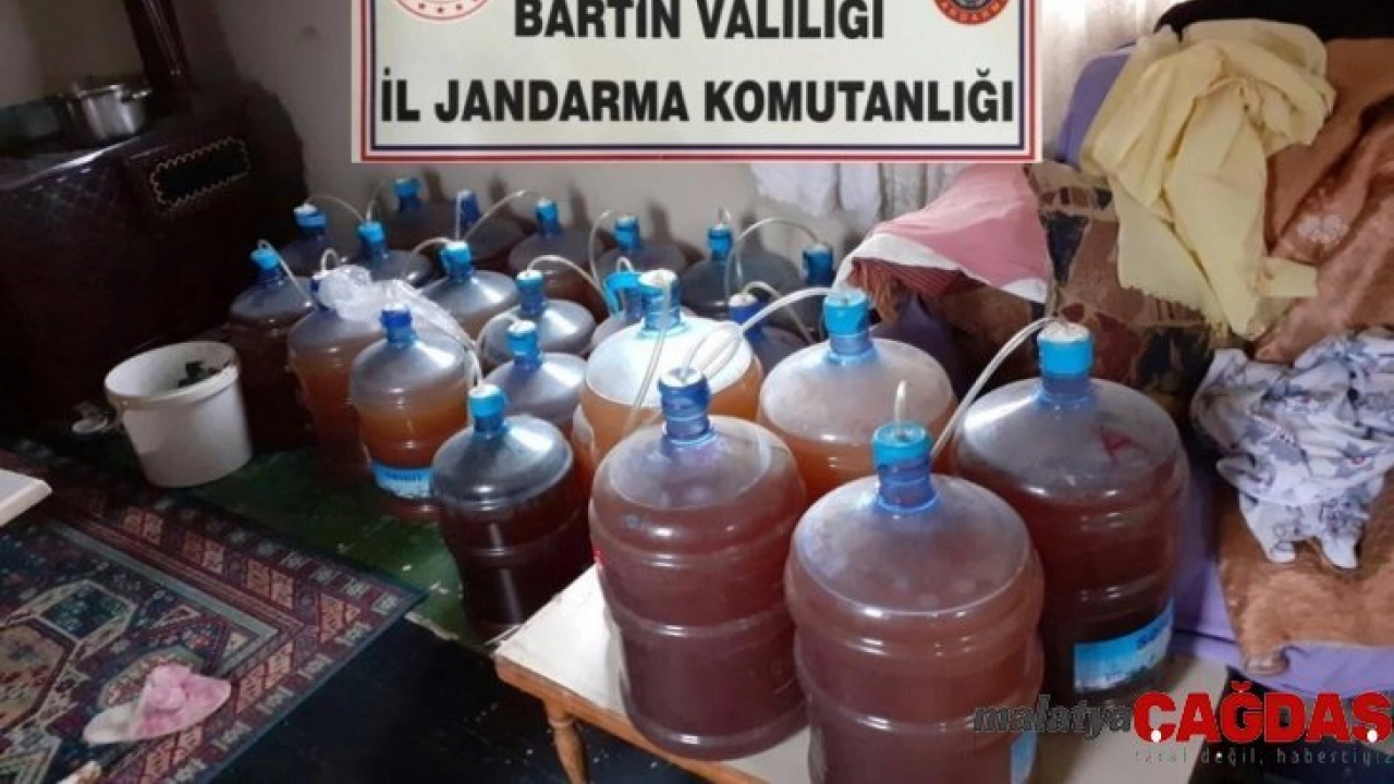 Bartın İl Jandarma Komutalığı ekiplerince Bartın Merkez İlçeye bağlı Gürgenpınarı Köyünde ikamet eden K.A. (60) isimli şahsın ormanlık alanda bulunan barakada sahte içki üretimi yaptığı tespit edildi.